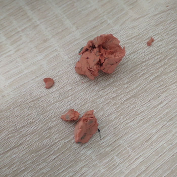 Ниже фотография остатков глины которые остались после лепки. Я их собрал в одну кучу(хоть и из-за быстрого застывания не совсем получилось). Даже такие куски глины очень прочные и твёрдые, как описывал выше.