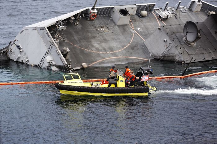 Боевое судно сползло с мели, на которую его после аварии затащили буксиры, корпус полностью погрузился под воду. Министерство обороны страны пока не сообщало, планируется ли поднимать фрегат со дна и ремонтировать.