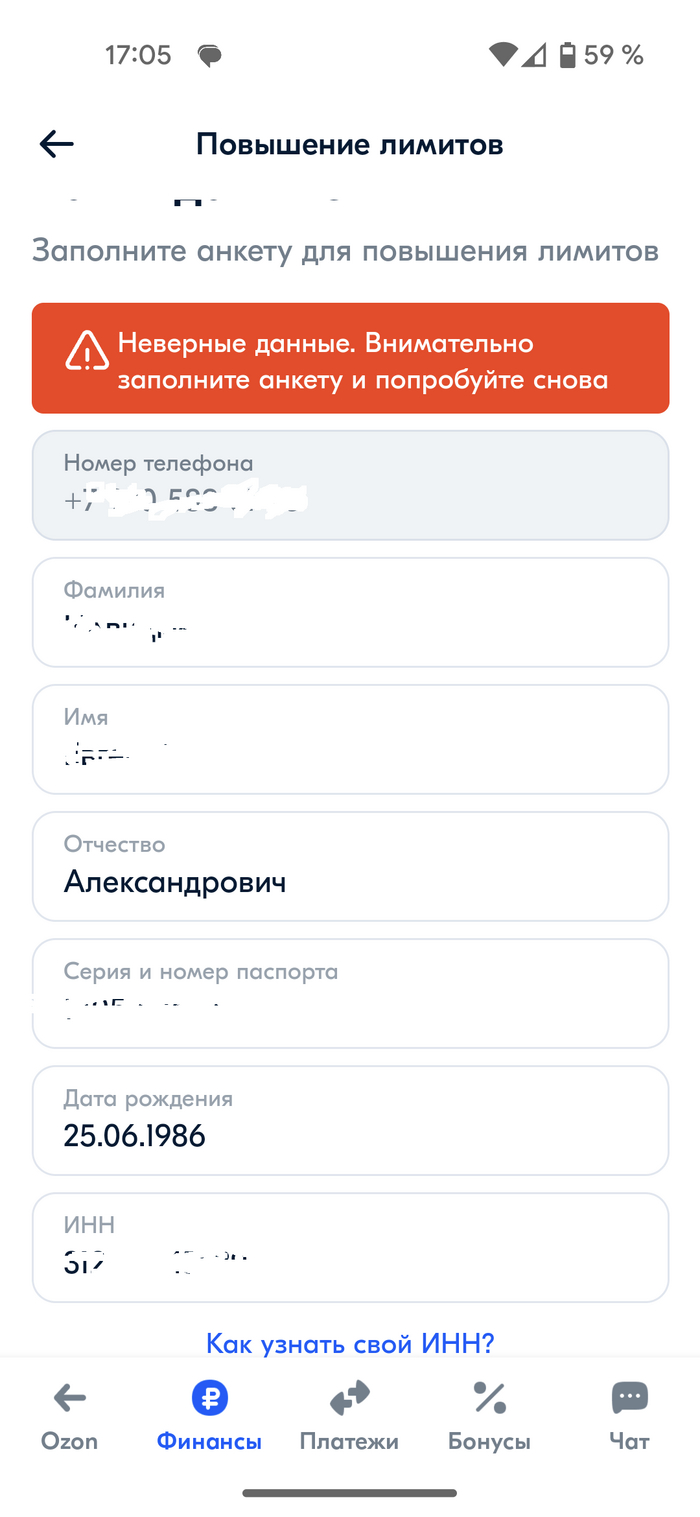 Вот такая картина. Ну яж не идиот наверное знаю свое ФИО. Говорит система что чтото не так, а что именно не говорит.