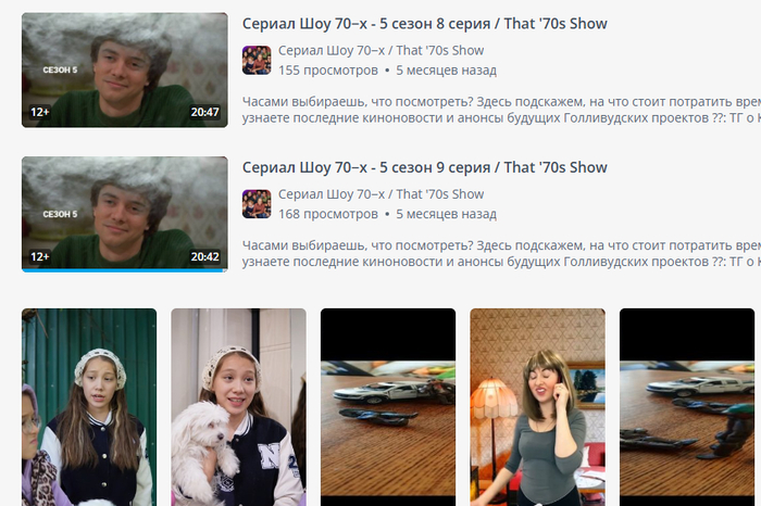 Ввожу простой поисковый запрос в Рутуб: Сериал Шоу 70−х - 5 сезон 4 серия. Результат: