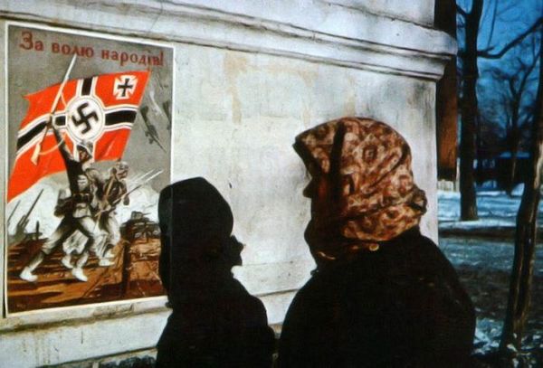 Украина. Жители оккупированного Харькова смотрят на плакаты немецкой пропаганды