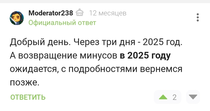 Ровно 12 месяцев назад @admin и подконтрольная ему шайка @moderator, и особенно @Moderator238, самолично обещали вернуть любимые нами минусы. Год почти закончился, где минусы?