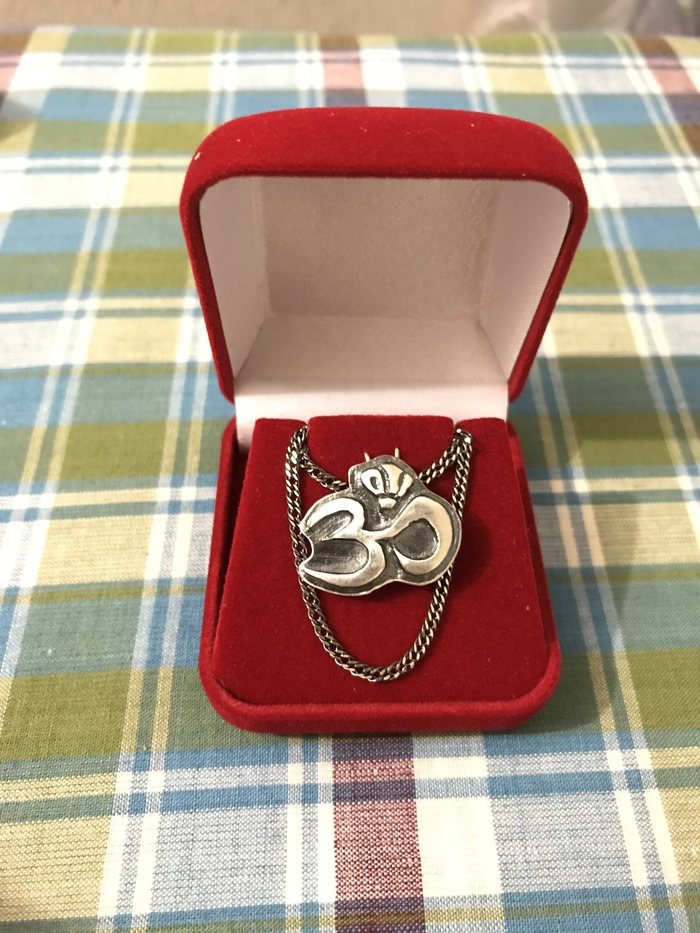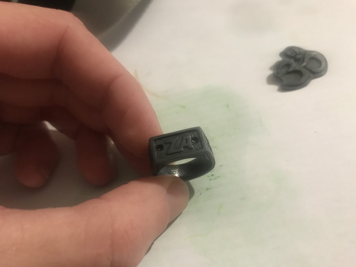 С камнями пришлось немного помучиться, так как на клей сажать я не хотел, а зажимать их ещё не научился. Но спустя жалких 6 часов и всех возможных матов в русском и других иностранных языках, у меня получилось. Камни сидели крепко и больше не шатались. Печатка вышла слегка кривовато, но это для себя и для первого раза вполне неплохо. Осталось только вручить ужика и подобрать цепочку к медальону, да вручить его моей вдохновительнице.