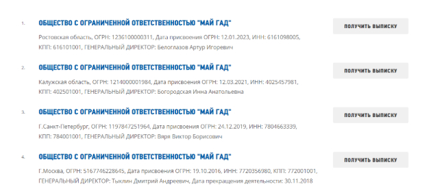 Я же дотошный юрист — поэтому я проверил название каждой ОООшки по реестрам. Да, это все реально существующие компании.