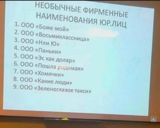 Сегодня давайте покажу свою подборку самых занимательных названий ОООшек. Погнали.