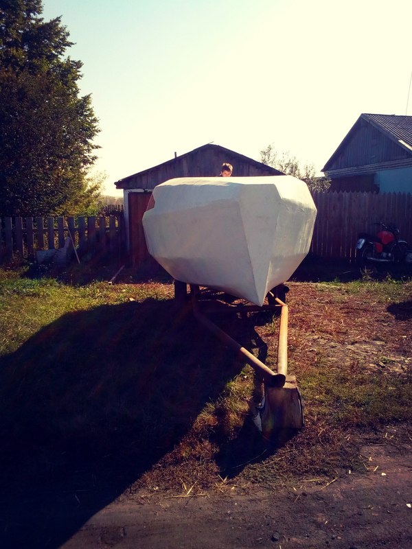 Форштевень решил к следующему лету сделать всё-таки острым из пенопласта. Все спрашивают - почему нос недоделал) Да и самому приятнее будет.