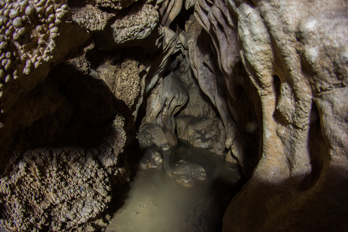 Все фотографии сделаны на широкоугольный объектив, поэтому кажется, что места там хватит для вечеринки, но на самом деле, едва выходит разминуться двум псевдоспелеологам.)