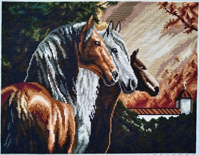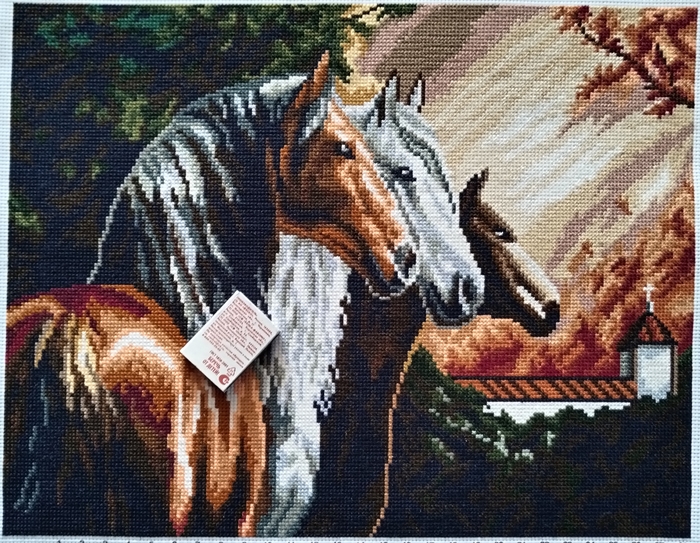 Руки пока дошли до набора для вышивания с лошадками. Делюсь готовой работой.