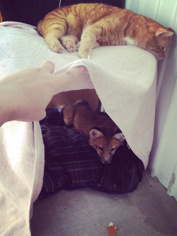 Когда мы приехали домой и выпустили Герду то наши кошки(их 2) были мягко говоря в шоке и не понимали что это или кто это,лиса же в свою очередь безумно радовалась и виляла хвостом от счастья,что она не одна и есть с кем играть.