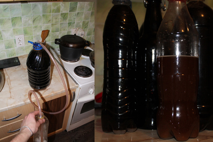 3. Разливаем пиво из баклажки по бутылкам через шланг, минимизируя контакт с воздухом. Шланг на дно баклашки не погружаем, чтобы не налить в бутылку мёртвых дрожжей со дна. Они могут дать пиву неприятный вкус.