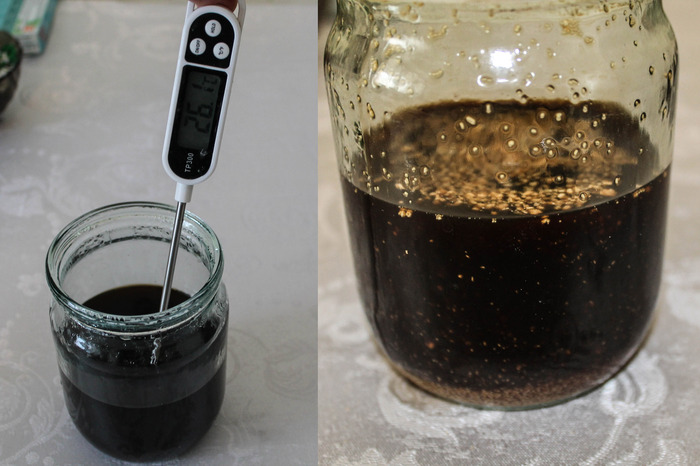 7. Часть сусла переливаем в стеклянную банку, которую до этого надо стерилизовать или подержать в йодной воде. Плотно закрываем и оставляем остужаться до 25 С (я ставлю в холодильник). Когда жидкость остынет, добавим туда дрожжи (для активации), плотно закроем и поставим в тёмное тёплое место, соблюдая чистоту, чтобы не занести бактерии. Дрожжи стандартные и самые распространенные - Safale S-04. Их достаточно добавить 3 г.