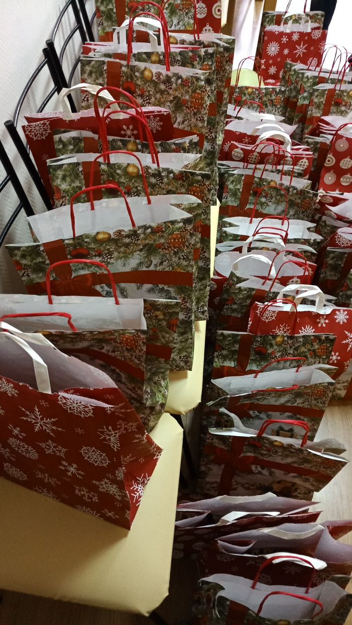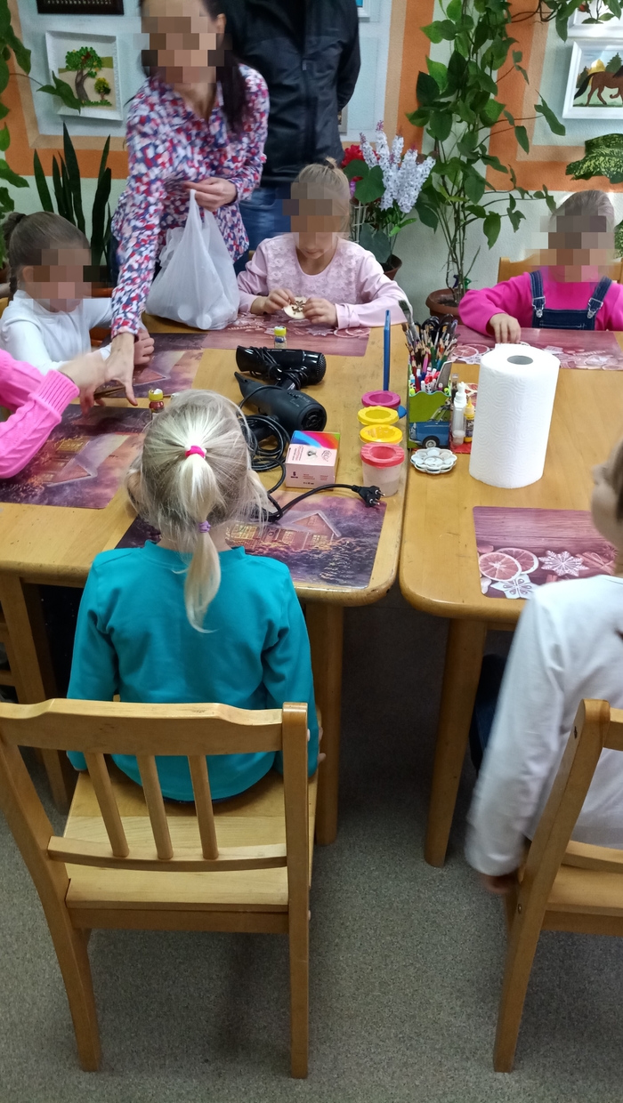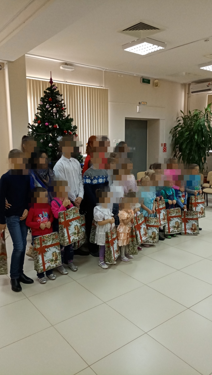 Позвали в зал на вручение подарков, но автор стеснительный и не смог выйти на сцену, чтобы вручить подарки. Это сделали воспитатели. (По просьбе воспитателей лица пришлось замазать.)