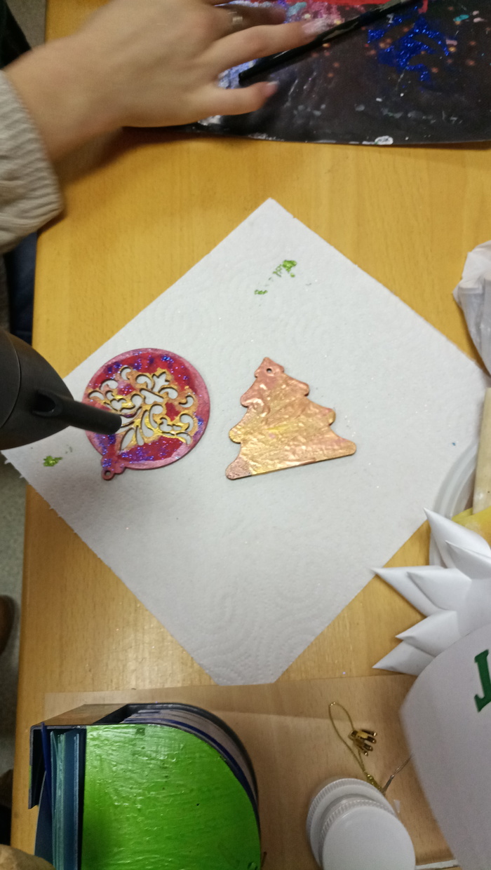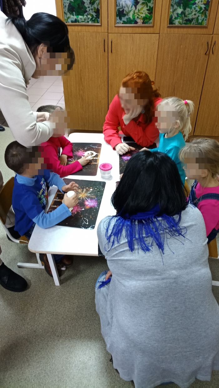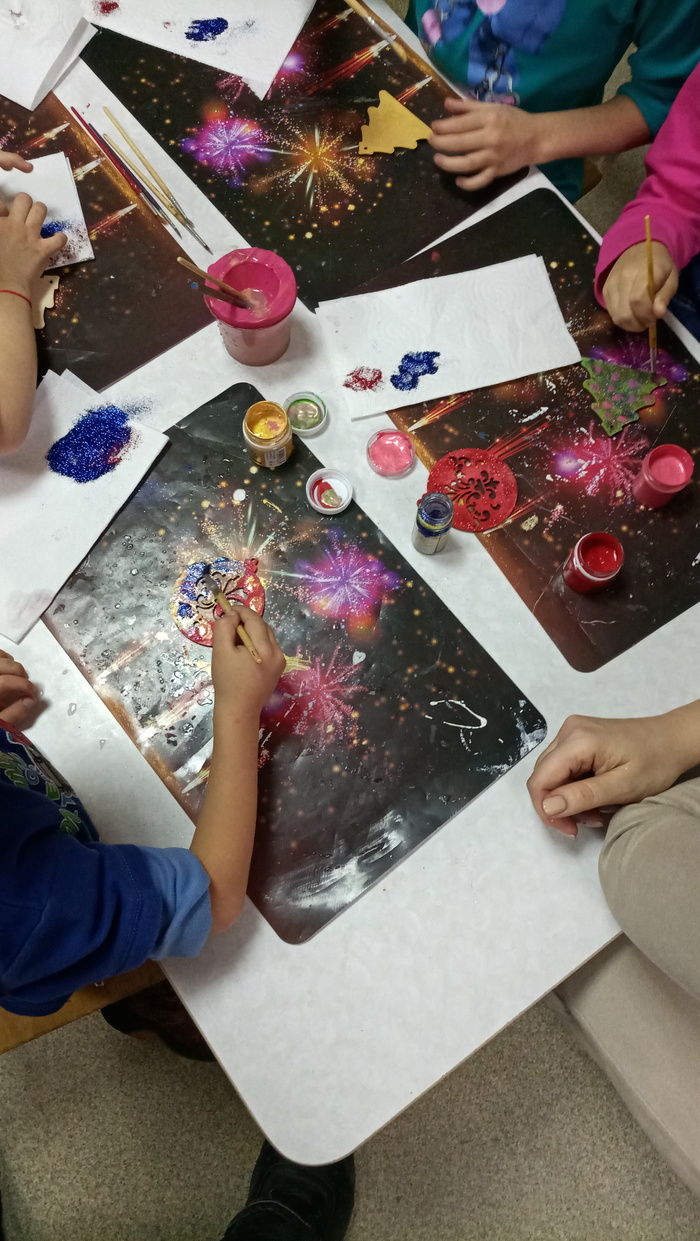 После этого мастер-класс по рисованию новогодних игрушек. Автор криворук, поэтому помогла подруга устроить этот конкурс. Ниже фото детей за работой.