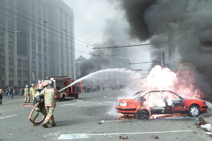 В тот воскресный день футбол транслировали на четырех экранах — на Арбате, Поклонной горе, Триумфальной площади, но самая большая толпа скопилась на Манежке, примыкающей к Красной площади и Кремлю. На столичных улицах не ставили никаких магнитных рамок, не производили досмотр, и к середине дня на площади рядом с гостиницей «Москва» собралось около 15 тысяч человек. Сборище было абсолютно стихийным, и милиция совершенно не позаботилась о безопасности, перекрыв перекресток Моховой, Тверской улиц и Охотного ряда лишь за 10 минут до стартового свистка.