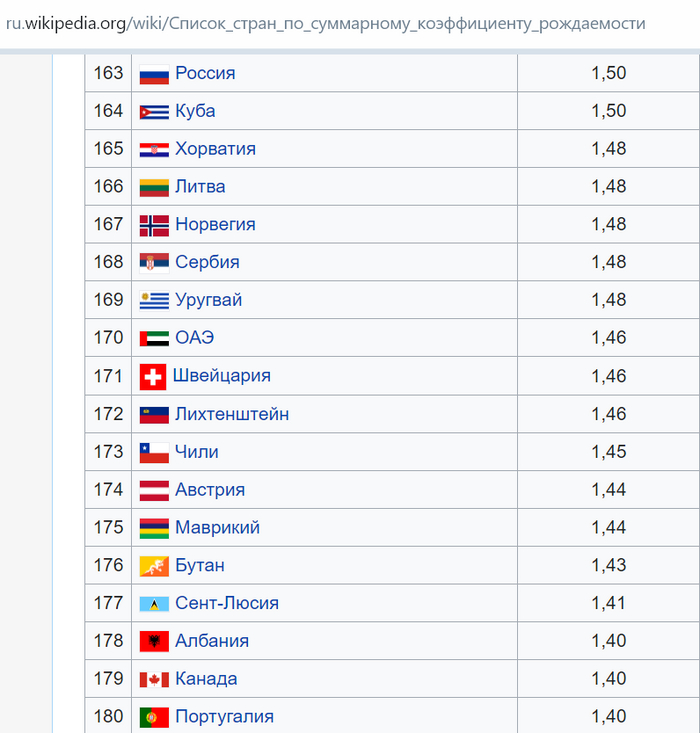 Вот список стран из википедии по суммарному коэффициенту рождаемости в 2024 году. Ясно, что данные могут быть недостоверными, но суть понятна.