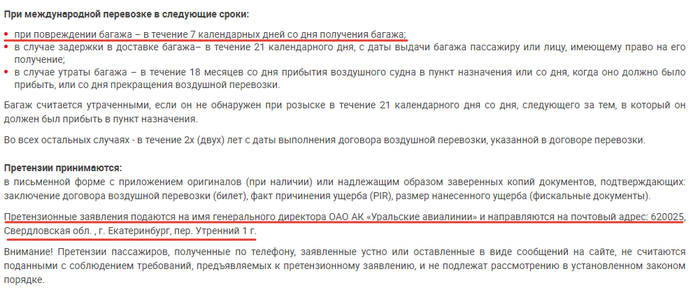 Получил от сотрудника аэропорта листок PIR, он мне подробно рассказал, что мне делать дальше, за что ему огромное спасибо. Иду на сайт "Уральских авиалиний" и читаю.