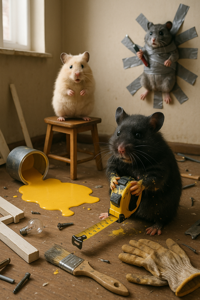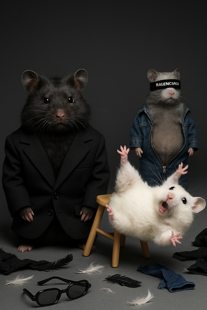 Черный, белый и серый: три хомяка в мире абсурда и хаоса. Эти пушистые ребята точно не боятся попасть в неловкую ситуацию.