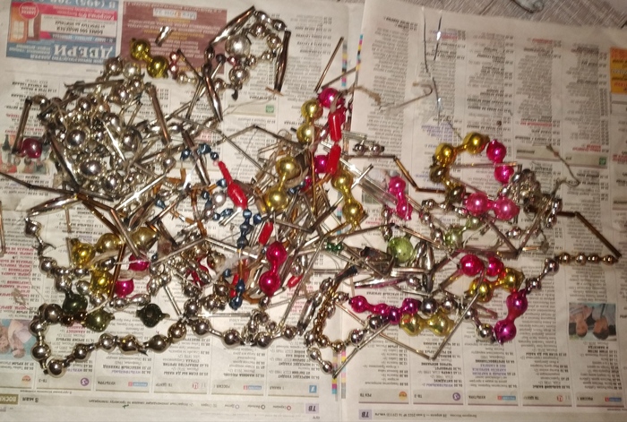 Гирлянда из стекла. ( верёвка сгнила в некоторых местах, по этому гирлянда развалилась.)