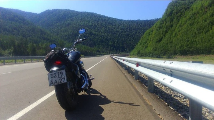 В общем незакрытый гештальт с длинными поездками на dragstar 1100 давал о себе знать, поэтому, долго не думая, мы решили - ЕДЕМ НА БАЙКАЛ! Жена покрутила у виска пальцем и ехать отказалась, ее можно понять, вторым номером ехать долго очень некомфортно. Смотря сейчас на проделанный путь, она оказалась на редкость проницательна. Для тех кто плохо знаком с Дальним востоком, от Хабаровска до Байкала немногим больше 3000 км. Забегая вперед, на Байкале мы не остановились и дали коксу аж до самого Усолья-Сибирского, на круг получилось около 7500км за 14 дней.
