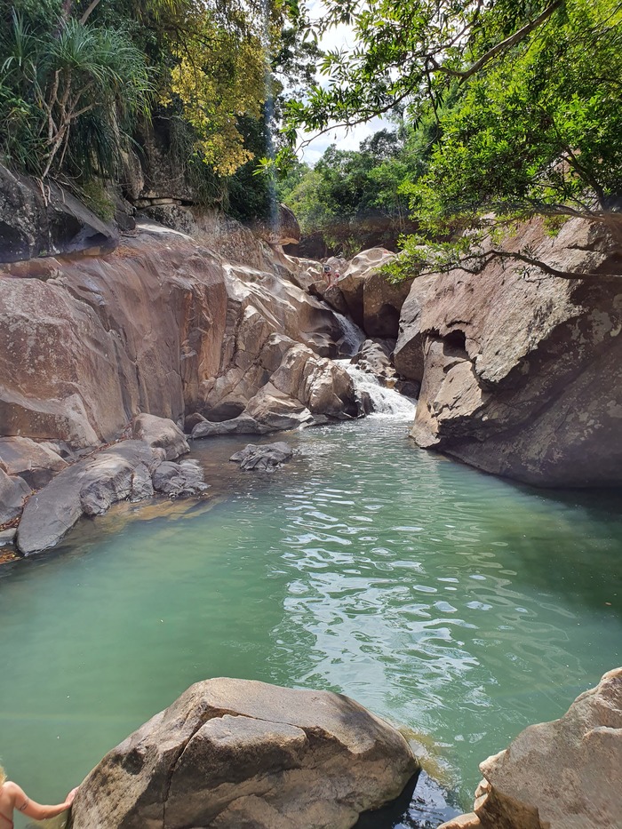 Водопады Бахо, с озером посреди скал, в котором живут рыбы, которые делают пилинг.