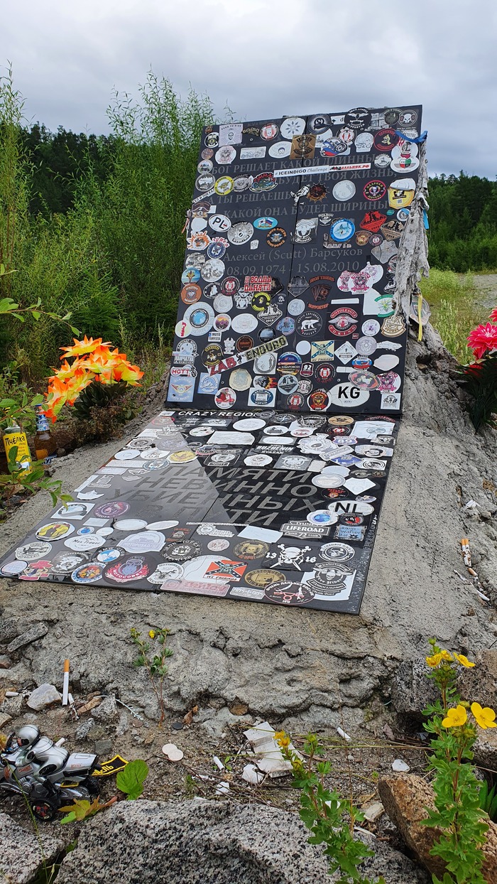 Не смогли проехать мимо памятника Скутту. В 2010 г он ехал на скутере из Нижнего Новгорода во Владивосток и обратно, но на обратной дороге был убит местными отморозками, которые потом попытались скрыть преступление и сжечь тело. Когда он перестал выходить на связь, ребята сами организовали и вели поиск, привлекали ТВ, теребили все возможные инстанции. Если бы не шум поднятый байкерами, скорее всего преступление было бы не раскрыто. Здесь на форуме можно прочитать всю историю с самого начала поисков: (https://sinusmoto.ru/forum/showthread.php?t=22834#.ZB_TQHZBy...). А вот статья в журнале За рулем. (https://www.zr.ru/content/articles/262074-pro_urodov_i_ludej...) Стоя там, возле памятника и посреди тайги, в голову лезут мысли о бренности бытия и о вечном...