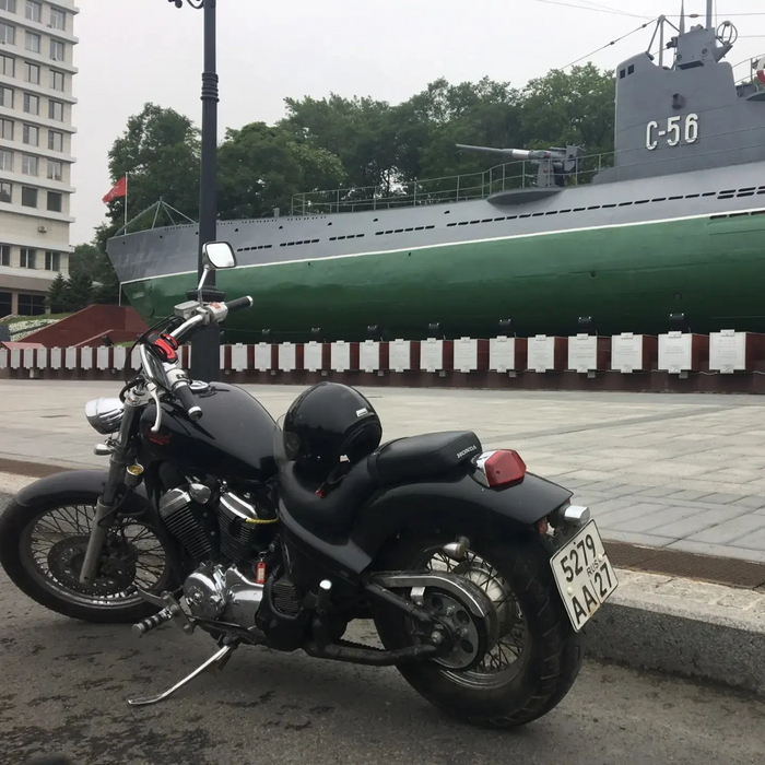 Так вот, вернувшись из страны вечного лета и листая один сайт объявлений, я увидел ЕГО и забыл про все. Про то что клялся, что никогда больше не куплю мотоцикл с задним моноамортизатором, про то что мне нужна ветрозащита, про то что я не хочу больше прямоток от которого вытекают уши. Короче, увидев его я потерял аппетит, сон и всю заначку. Мощный крузер, большой, железный и блестящий. Чемодан, вокзал, Владивосток и вот первая встреча.
