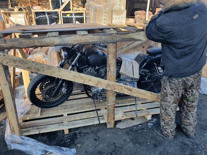 Yamaha drag star 1100 custom. Объем двигателя 1100сс.Оригинальный внешний вид. Не родной бак, сиденье, глушителя, зеркала. В общем он кардинально отличается от стоковой версии. Грузовик, транспортная и вот в середине марта я влюбленными глазами наблюдаю как доска за доской отрывается обрешетка. Я еще не знал что мне придется два часа долбить замёрзшую землю что бы открыть гараж.