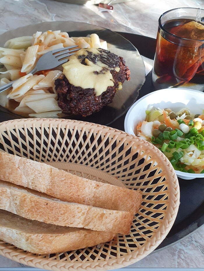 Это номер и ужин. Так же можно приять душ. Резюмируя первый день пути, можно сказать что все в принципе прошло неплохо, отличная ровная дорога, совсем маленький кусок грунтовки. Первые 820км пути дались без особых усилий. Из смешного в этот день можно рассказать о том, как я поймал осу в рукав, а когда мы остановились на заправке ее перестало вжимать ветром в куртку и она начала меня жалить. Саня застал картину на заправке, как я чуть ли не бросаю мотик, дергаясь и бегая по заправке с дикими криками, начинаю срывать с себя куртку и кофту xD