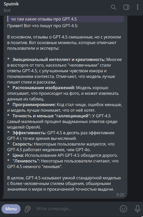 Может, я чего-то не понимаю? Может, я просто не умею им пользоваться? Пишите в комментариях, делитесь своим опытом. Только, пожалуйста, давайте без фанатизма и попыток оправдать свои вложения. Интересно услышать честное мнение тех, кто действительно пользуется ChatGPT.