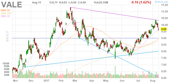 Акции VALE с начала года подорожали на 31,36%. За месяц акции прибавили 6,84% до $9,69 на торгах 11 августа. Рыночная капитализация компании составляет $50,84 млрд.