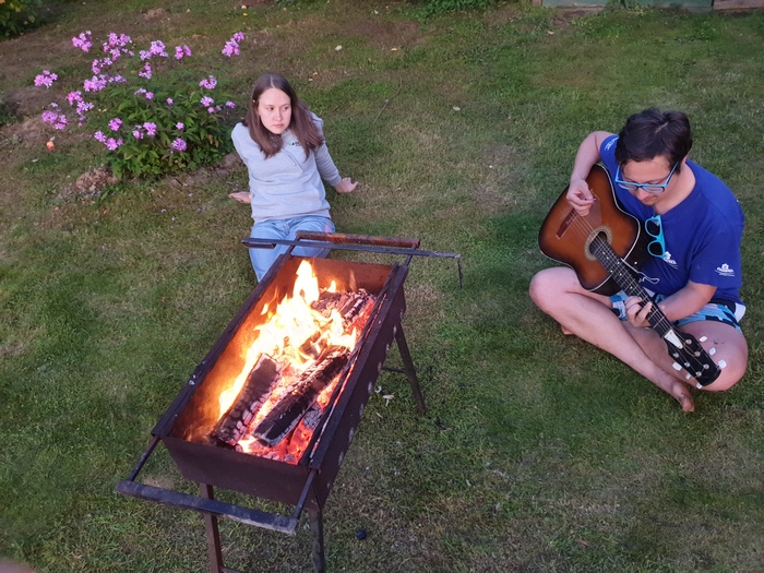 Немного проголодавшись, зарулили к нашему товарищу на дачный шашлычок .