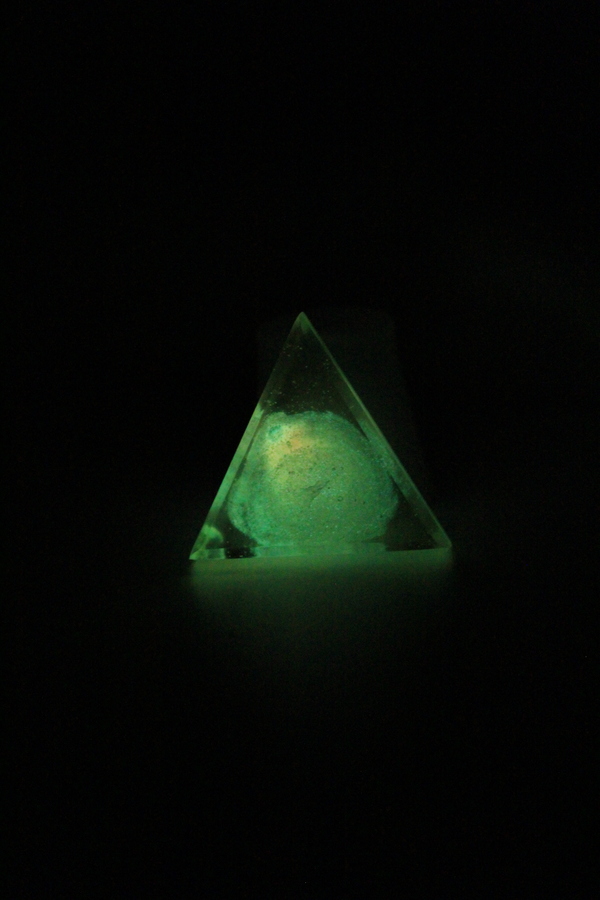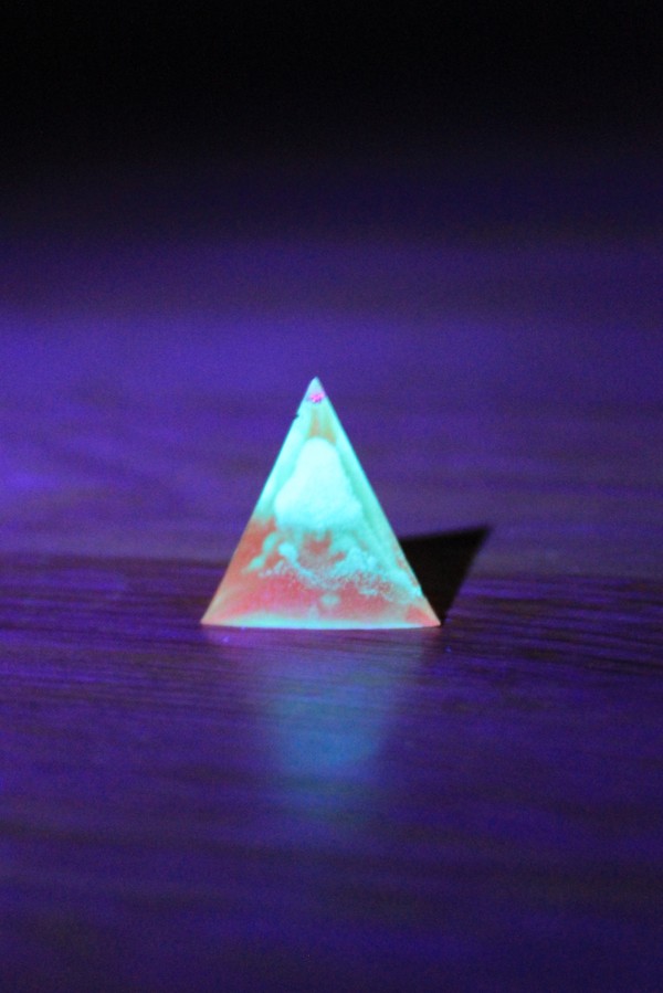 Снова здравствуйте. Пока у меня есть хороший фотоаппарат и кривые руки, хочу показать конус и пирамидку с люминофором, но сделанные уже целенаправленно а не из остатков эпоксидки.