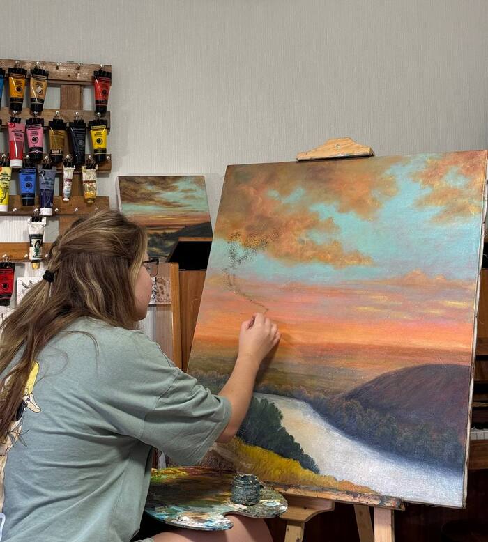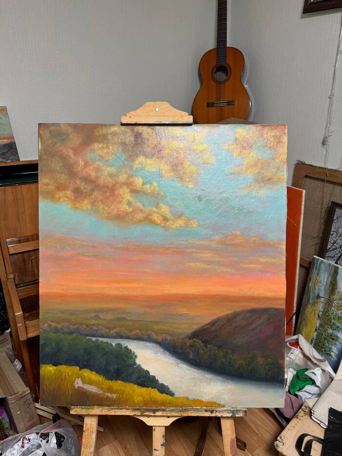 Я была на IX Всероссийском пленэре «Ыраххы аалда», посвящённому творчеству великого русского художника Василия Сурикова. Это было не просто творческое событие, а настоящее приключение! С 13 по 26 сентября я оказалась в самой сердцевине Республики Хакасия — в месте, где заканчивается связь, но начинается вдохновение!))Было ещё и личное испытание: впервые летела так далеко — почти 5 тысяч километров, 5 часов полёта и разница во времени аж в +4 часа! Пока привыкала к новому ритму, казалось, что организм пытается договориться с часами, но у нас вышло временное перемирие.
