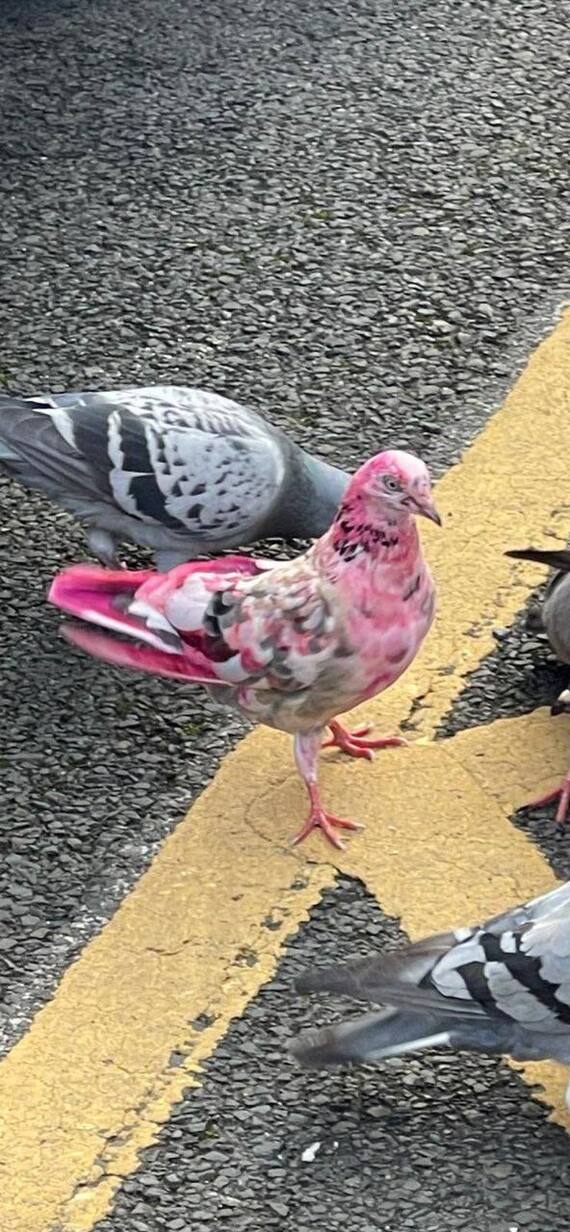 В Британии в центре города Бьюри был замечен голубь с необычным окрасом - розовым.