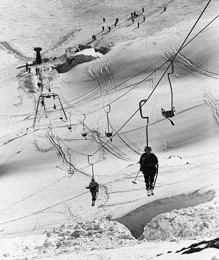 Распорядок дня горнолыжника той эпохи выглядел примерно так: полдня изнурительного подъёма на гору, а затем счастливые двадцать-тридцать минут стремительного спуска вниз. На второй подъём в этот день сил уже могло и не остаться, но зато тогда по-настоящему умели ценить каждую секунду спуска.