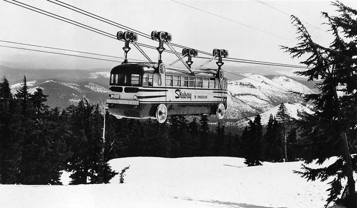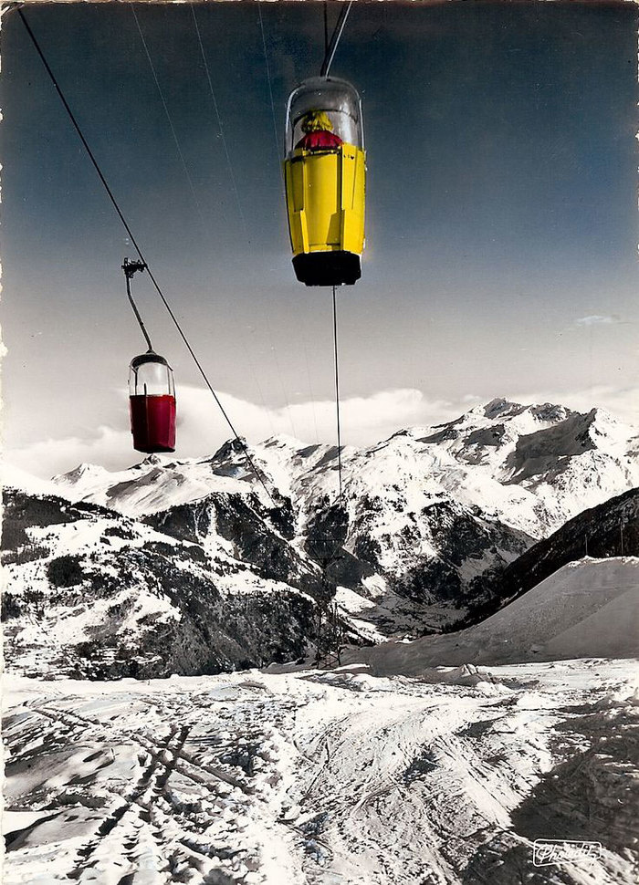 Вслед за кресельными подъёмниками появилась канатная дорога с закрытыми кабинами, защищающими пассажиров от ветра и снега. Вначале это были небольшие кабинки на несколько человек, а затем и большие вагоны в виде трамвая или даже целого автобуса.
