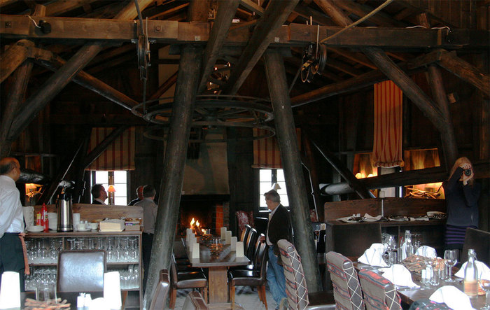 Пример использования старого бугельного подъёмника в норвежском Нурефьеле. В помещении нижней станции открылся ресторан, а опора подъёмника с натянутым тросом дополняет его внутренний интерьер © Владимир Головин