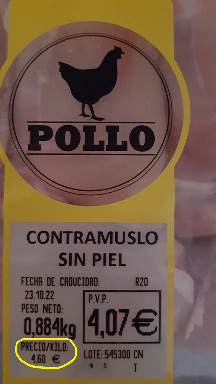 Куриная грудка, без костей, без кожи, в лоточке аж до ноября держала цену в 7 €/кг, а вот в декабре подорожала на 15 центов за кило: