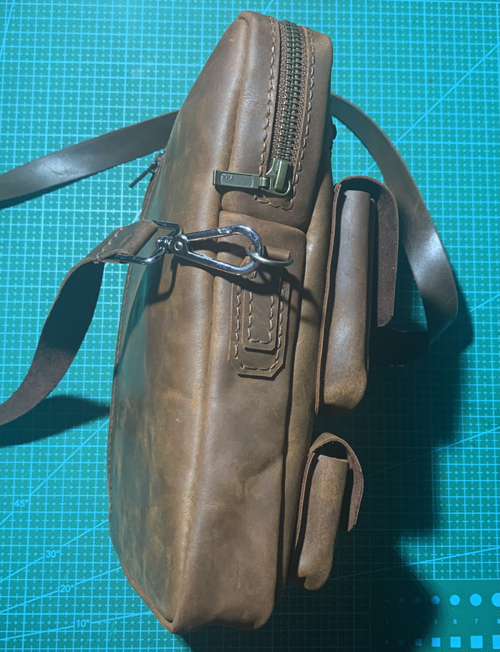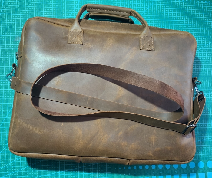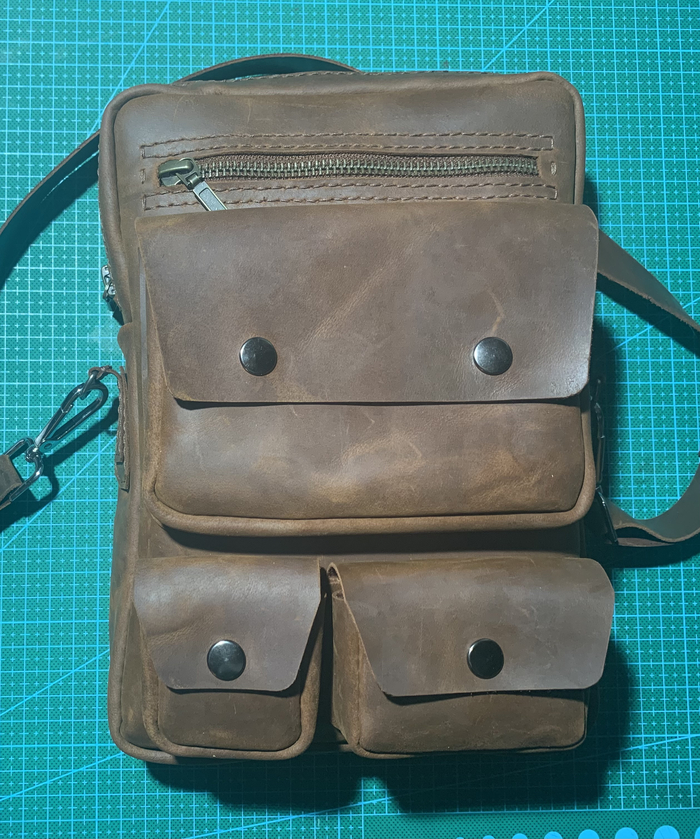 Процесс изготовления не снимал, хотел скорее опробовать выкройку (признаюсь-не моя-покупал), кое-как дождался поставки материала и за пару-тройку вечеров получилась такая вот сумка для повседневного использования.