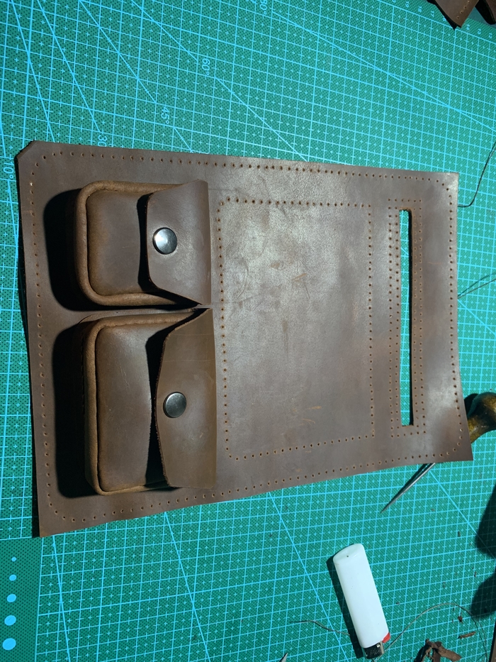 Дальше уже понятно что все прошил, швы простучал, только урез пока не обработал-отвлёкся, но пройдусь токонолом обязательно. Вот что по итогу получилось: