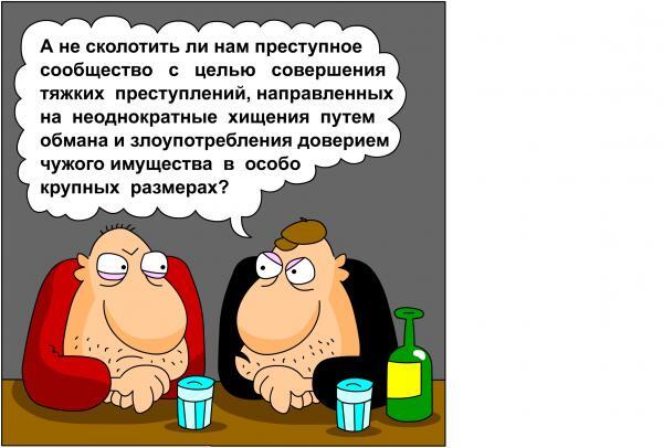 В частности, для наших ленивых следователей, кислых прокурорских крючков и недоверчивых судей нужна была во первых: особая опасность. Преступная организация в России хоть считается одной из самых опасных форм соучастия, так как ответственность наступает уже за сам факт ее создания или участия, независимо от совершения конкретных преступлений, но может считаться преступной только когда преступления либо совершены , либо подготовлены по полной. И это должны быть не одинаковые преступления, по типу однотипных разбойных нападений (тогда прокурорские видят просто группу лиц и эпизоды разбоев) а несколько разных тяжких и особо тяжких преступлений. Мошенничества на небольшие суммы, или там квартирные кражонки не котируются, уголовному кодексу тут надо, чтоб творился мрак, кровища и ужос.