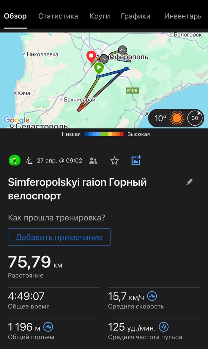 С набором высоты крутить становилось сложнее. Ногам было легко, при этом пульс был повышен и дыхание учащено. В итоге к 17:00 докрутили до Лаго-Наки.
