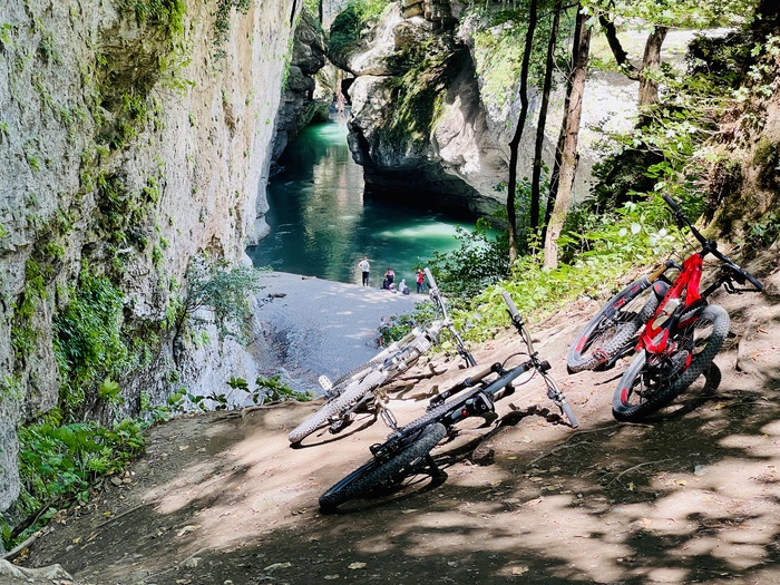 Проснулись в гостишке в Солохауле, отмыли велики в реке Шахе и покрутили по асфальту в Дагомыс.