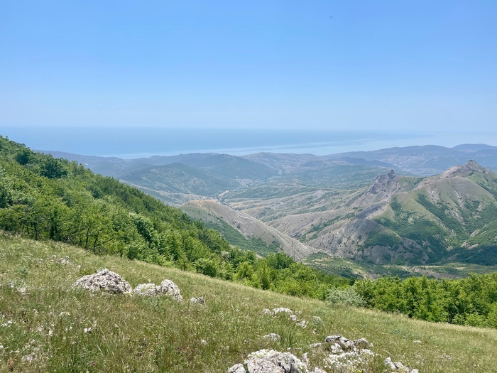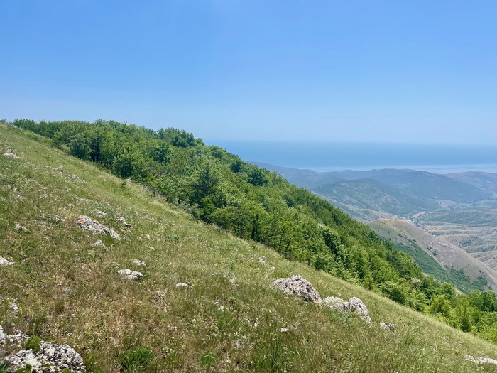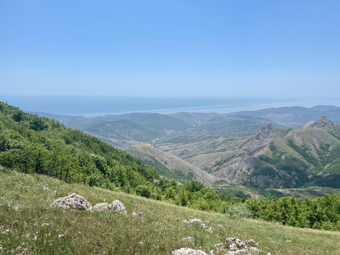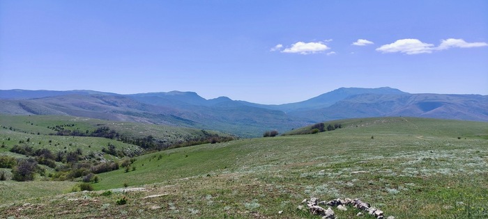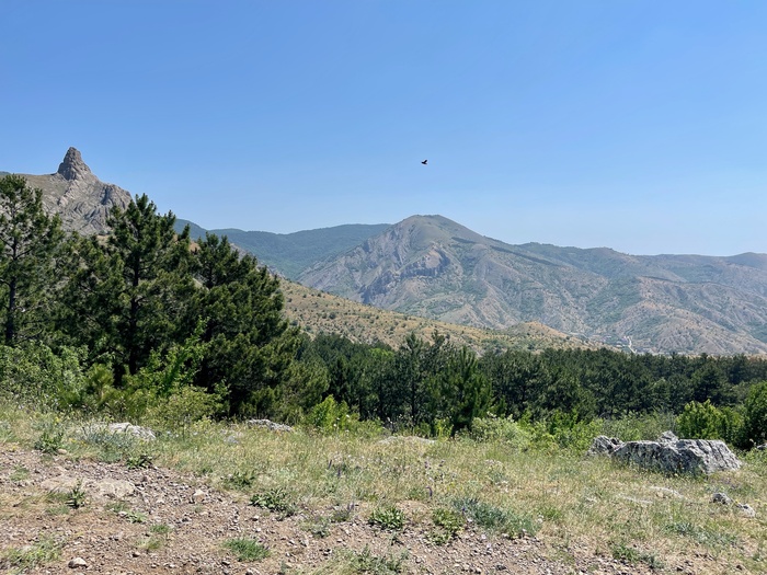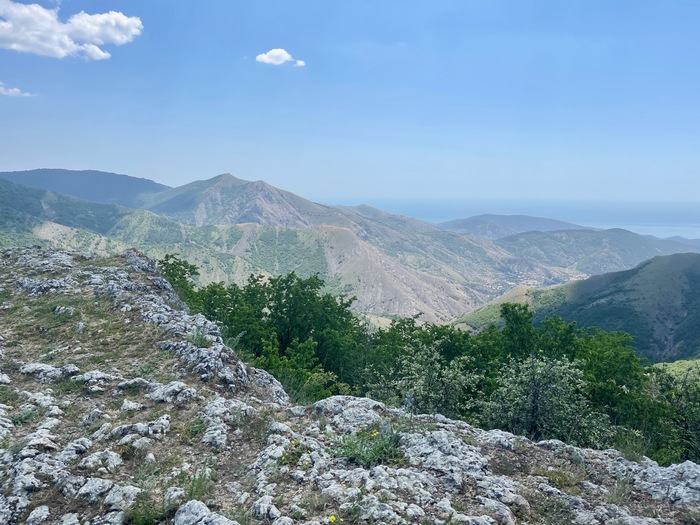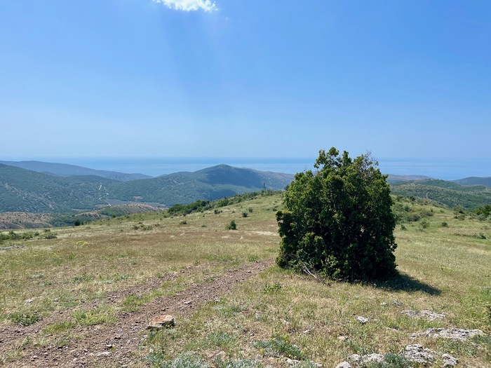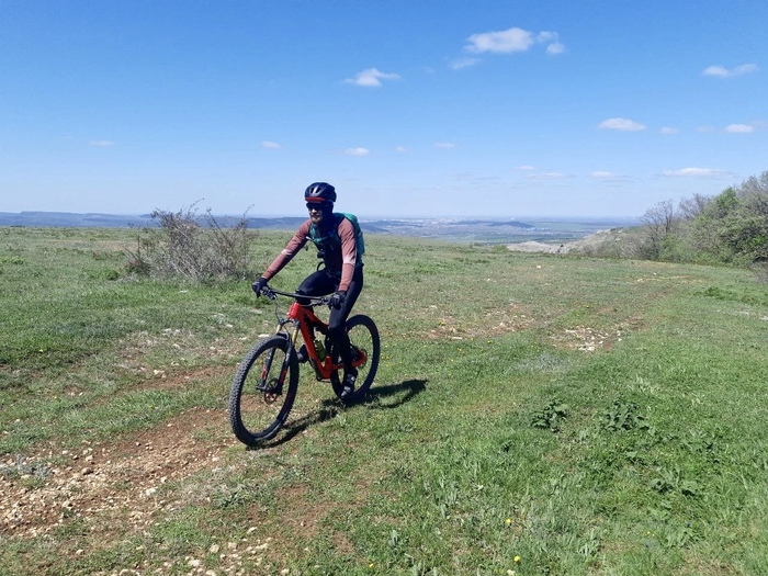 13-14 июня устроили велопоход в окрестностях Судака. В первый день стояла отличная погода, было не жарко и не холодно. Стартовали из Изюмовки. Через Старый Крым, Грушевку и Тополевку докрутили до Земляничного. Через перевал попали на хребет Орта-Сырт. С хребта спустились до начала трейла Амбулапла, немного проехали по нему и ушли на трейл Вигла. После поднялись на Папая-Кая, осмотрели "Язык тролля", с горы спускались по трейлу Ай-Фока. Далее подъём - Стенки - источник - Тропа Покорителей.