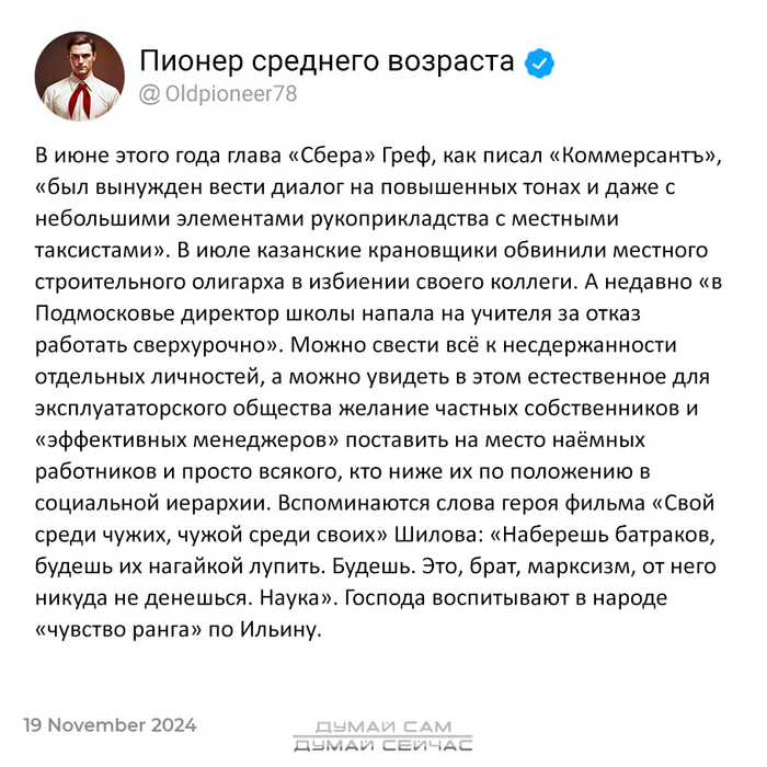 Есть, правда, другая версия. Она связана со вполне материальными факторами: отсутствием работы, образования, социальных перспектив, то есть с состоянием общественной среды, заставляющим вспомнить самые мрачные произведения Толстого, Достоевского, Гаршина.