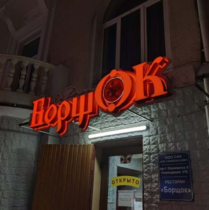 Не имею ничего против украинской кухни, фольклора и аутентичности, НО стилизованное изображение трезубца в названии забегаловки западноукраинской кухни, находящейся в городе-герое Севастополе, это по моему слишком...