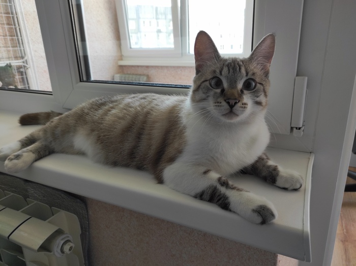 Сами думали, что сиамка + окси азулис, т.к. очень похожи точки роста вибрисов (усов) но хз. И глаза немного посерели, уже не такие ярко-голубые.