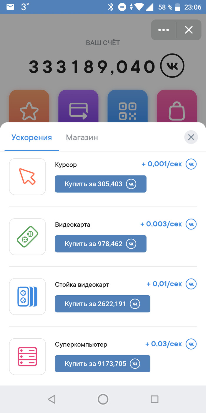 1 апреля Вк запустила новую игру VK coin. В нее уже сыграли больше 4 миллионов человек. В соц.сети уже появились скупщики виртуальной валюты, по очень интересному курсу 1000 coin = 1 рублей. Деньги можно зарабатывать лежа на диване (как любит большинство), главное что бы был телефон потдерживающий игру. Появились уже свои миллиордеры( на момент создания поста 8,6 миллиардов)