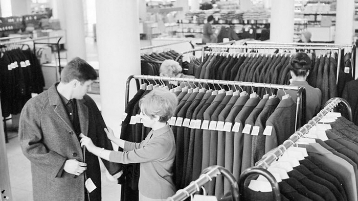 Сейчас требуется уточнение. Поговорим о таком понятии, как «группа товаров». Многие представляют себе СССР, как мрачную страну пустых полок и тотального дефицита – это не соответствует действительности. Да, так выглядел Союз времен Горбачева, времен развала государства в начале 90-х. А вот в период середины 60х – начала 80х страна обеспечивала граждан всем необходимым. В магазинах, к примеру, стояли горы банок с красной (125 гр – 3 руб.) и черной икрой (110 гр – 5 руб.). Лежали тушки «синей птицы» - кстати, именно так выглядит натуральная курятина, не напичканная стероидами и антибиотиками. На витринах вырастали пирамиды из «Пошехонского» и «Российского» сыров. Девять сортов водки, 38 сортов вина. Государство ставило себе в приоритет – накормить граждан! А вот на такую фигню, как модная одежда – внимания не обращали. Поэтому клепала наша швейная промышленность никому не нужное, примитивное шмотьё. Новые фасоны и лекала вводились медленно, строчились миллионы однотипных вещей.