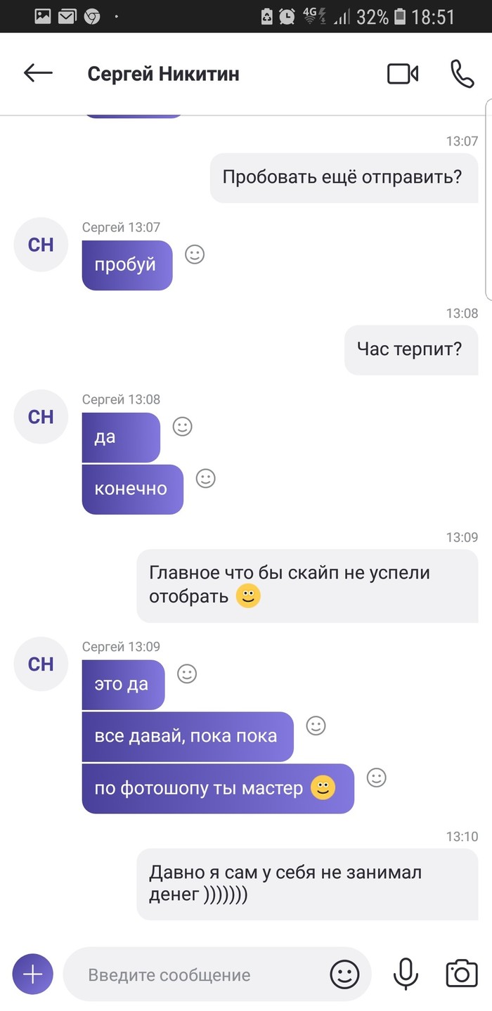 Немного решил продолжить общение и даже скинул ему якобы скрин перевода